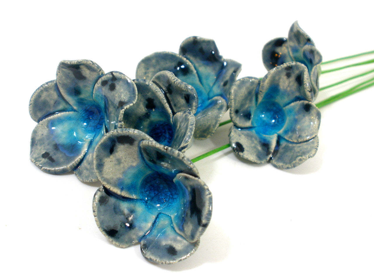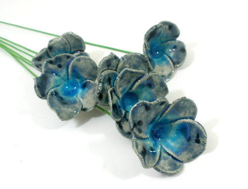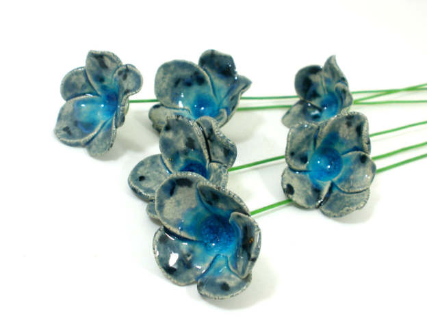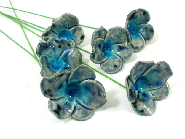 Blue and turquoise ceramic flowers