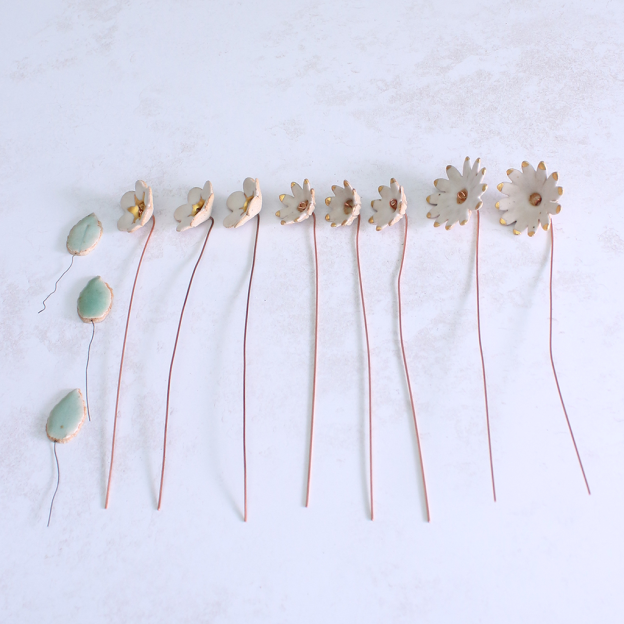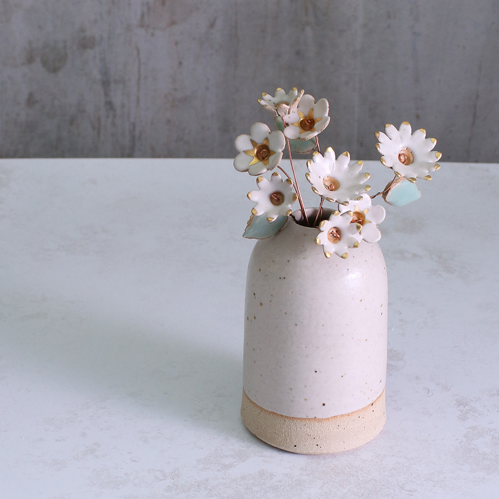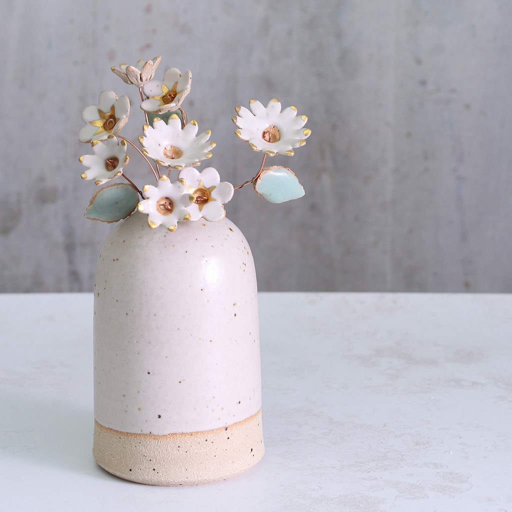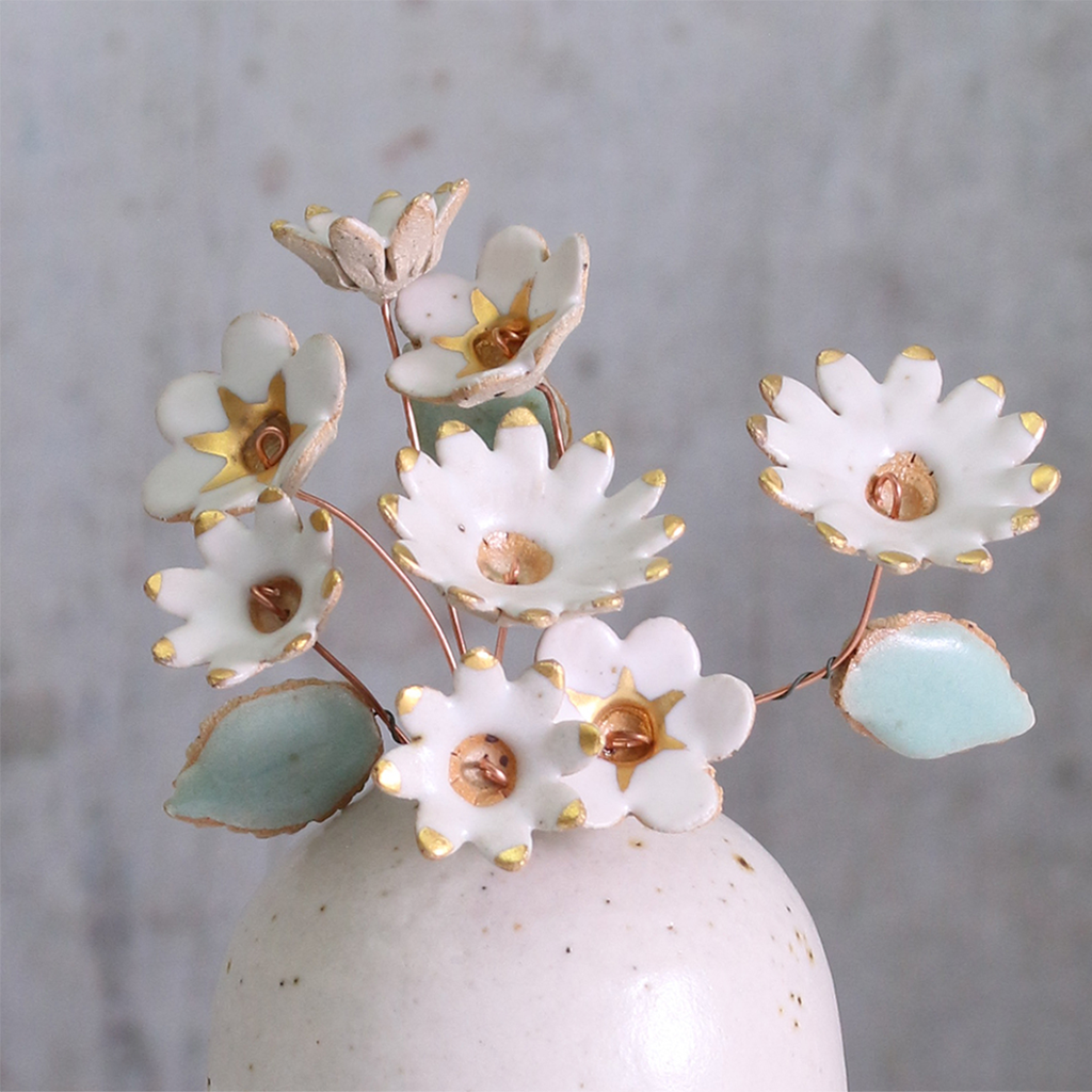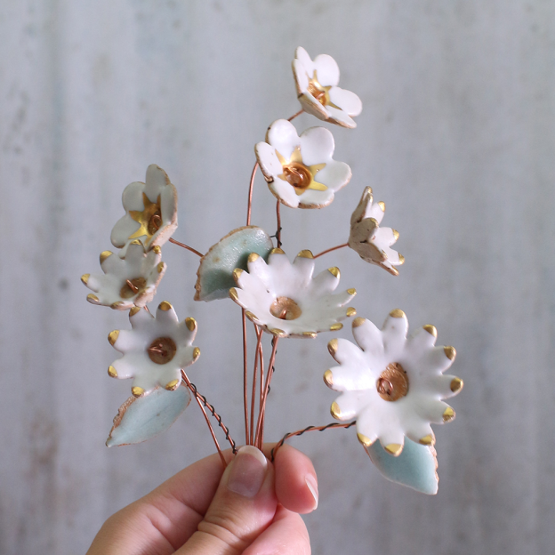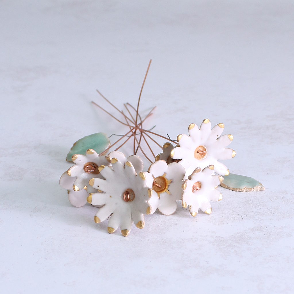 White and Gold Ceramic Flower Bouquet Large