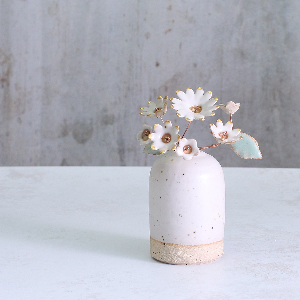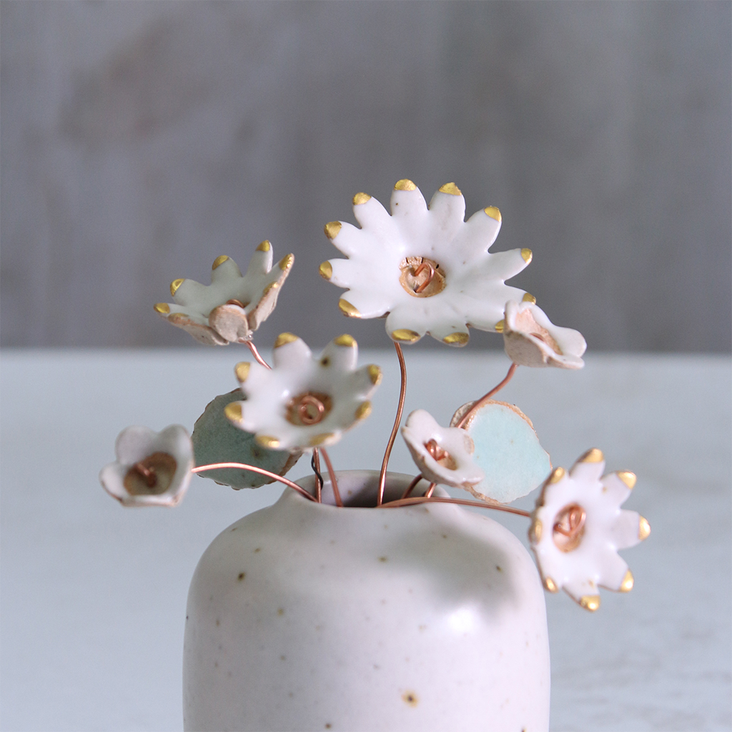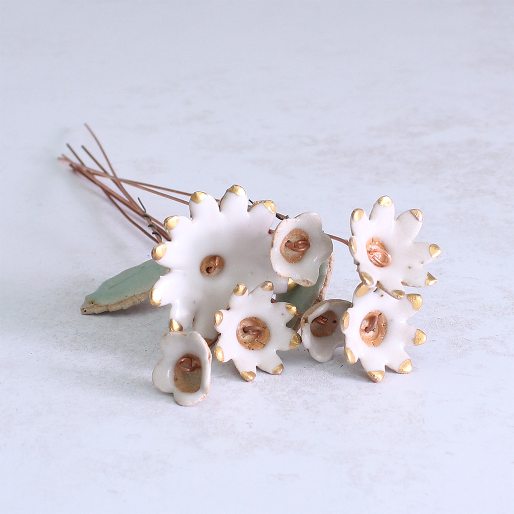 White and Gold Ceramic Flower Bouquet Small