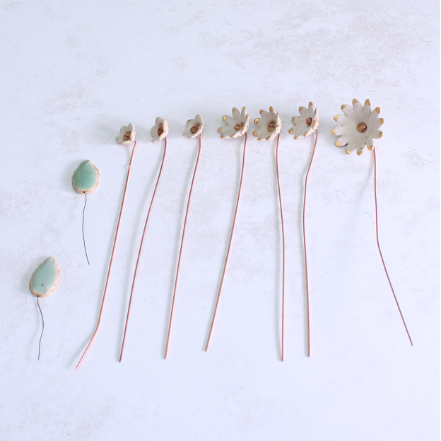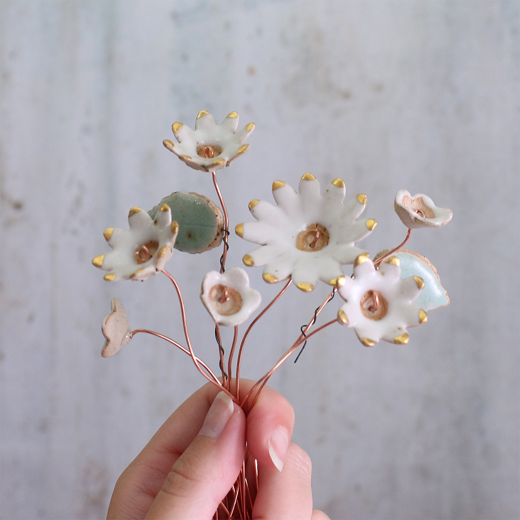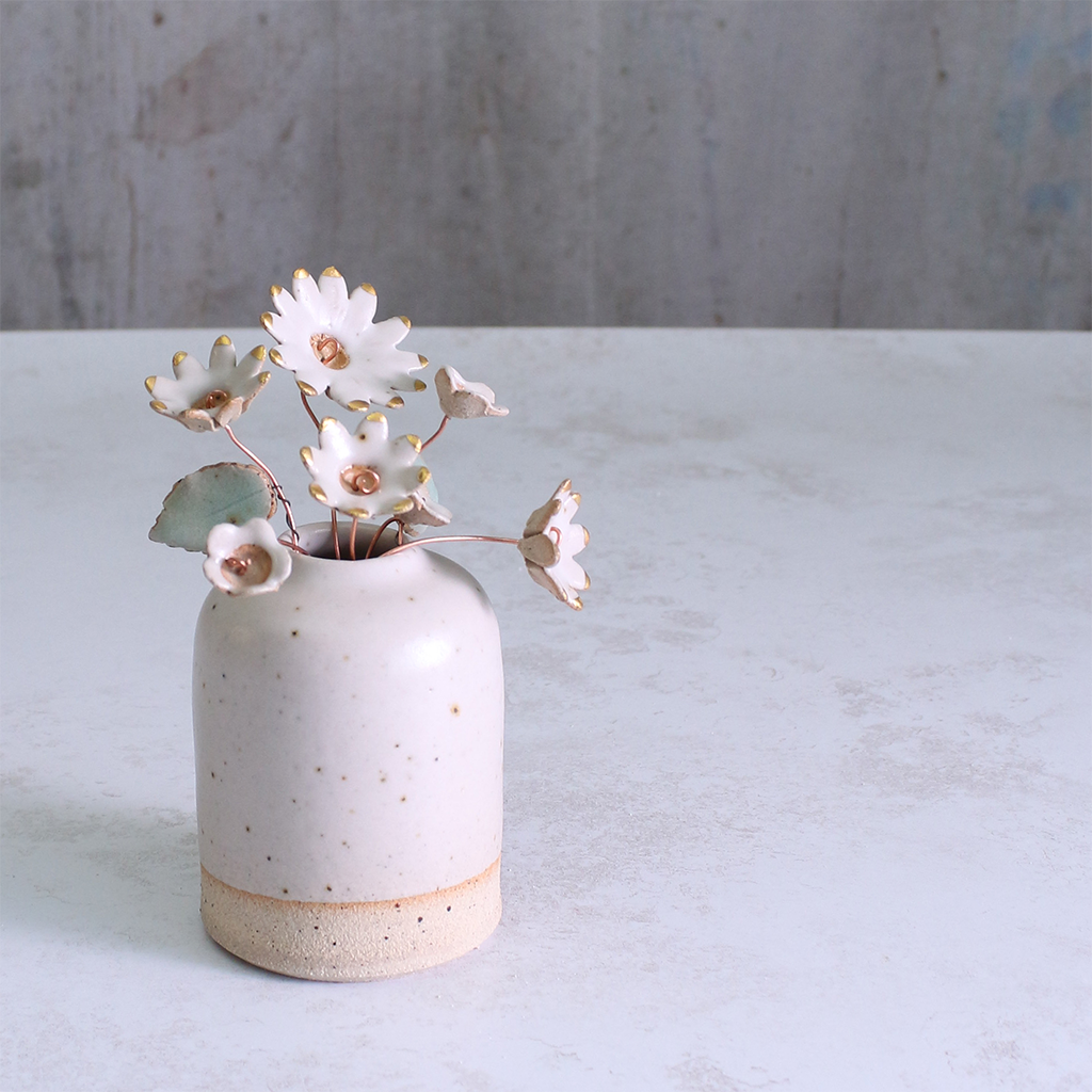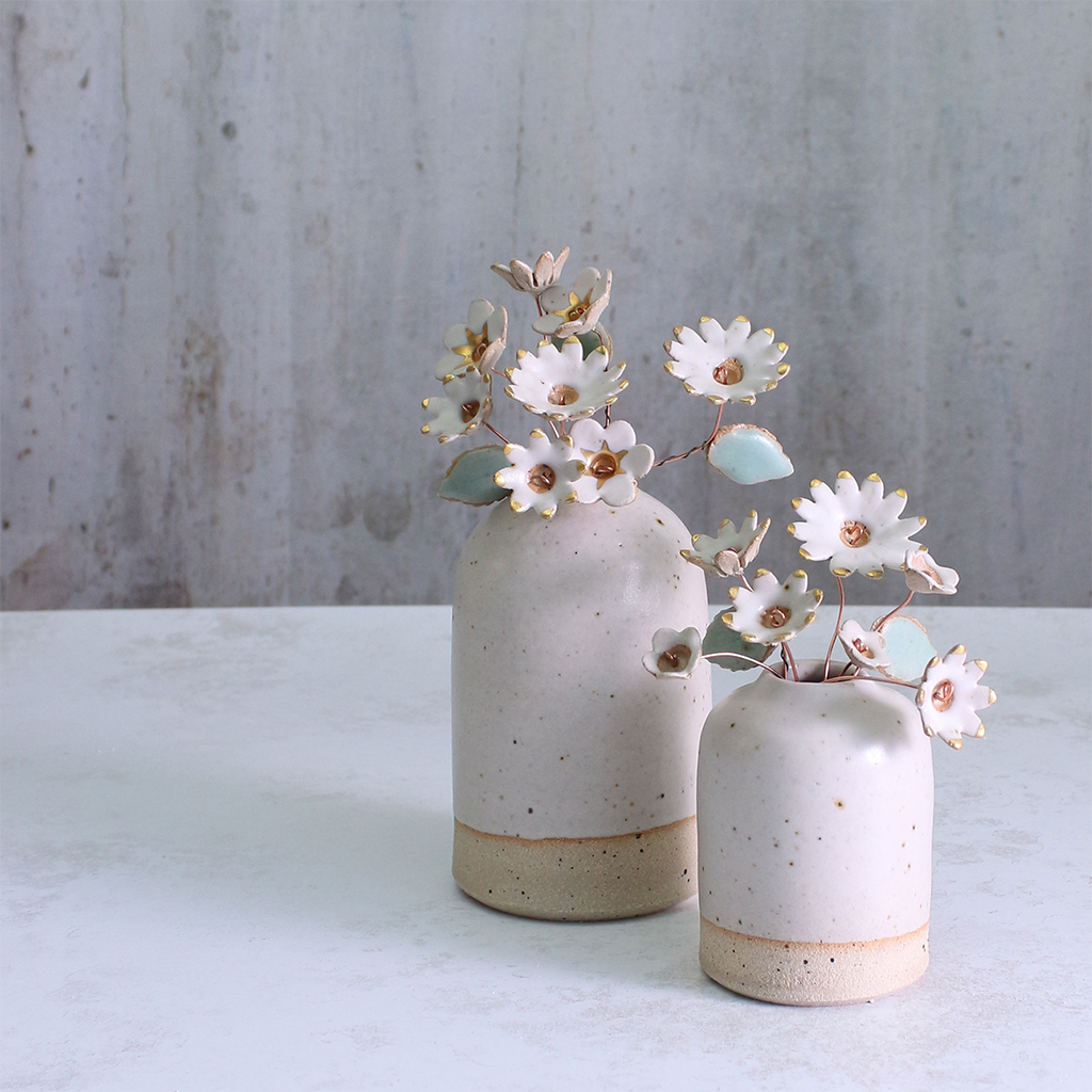 White and Gold Ceramic Flower Bouquet Small