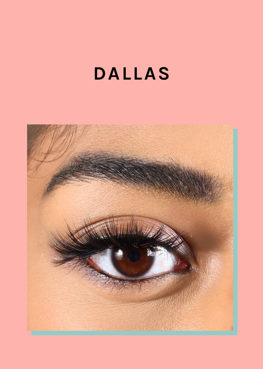 GLAM, super WISPY, + stacked, A+ Glam 3D Faux Mink Eyelashes are 100% Vegan fiber layered to add fluttery length + volume to all eye shapes. Features a wide lash band to last multiple wears.