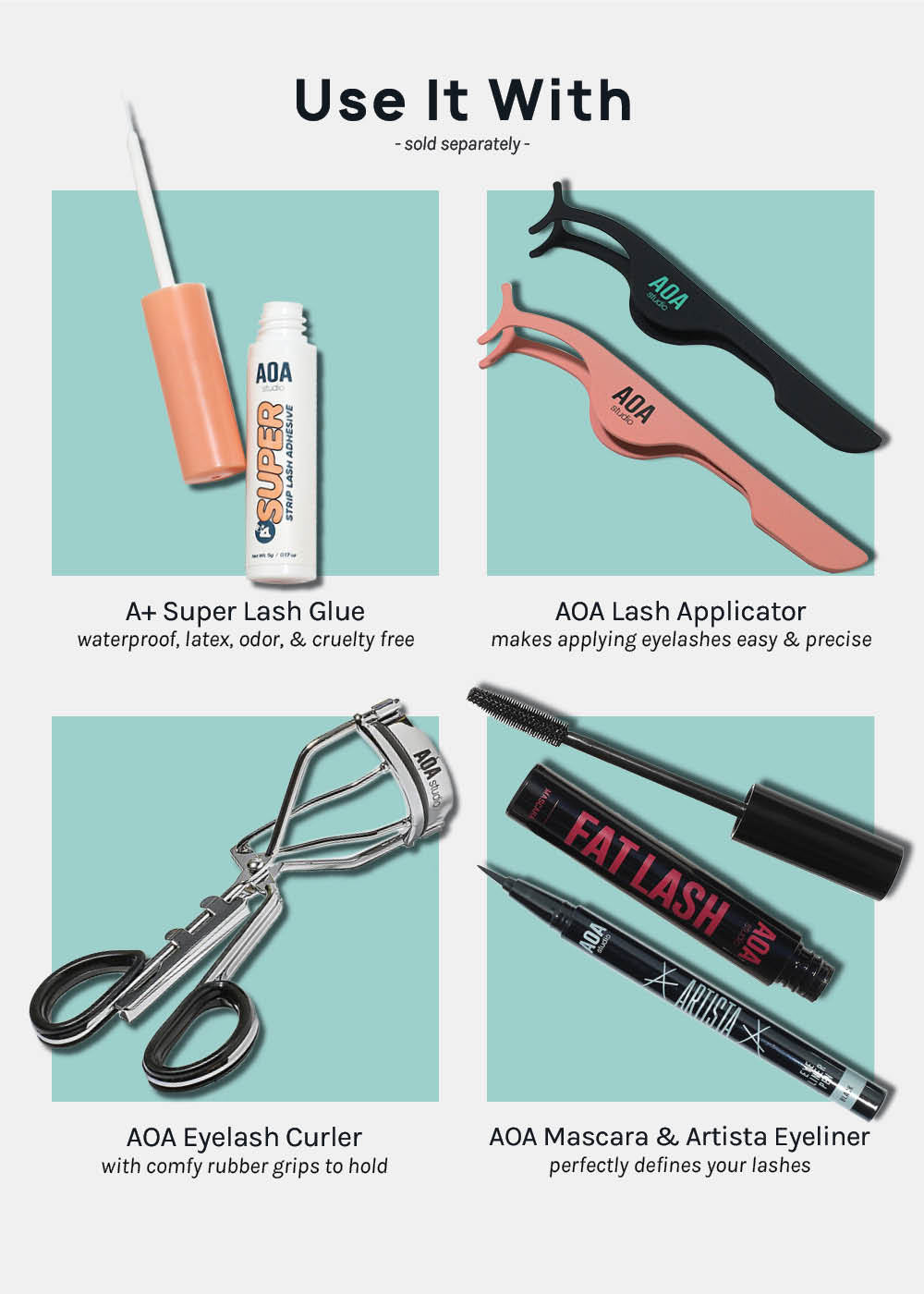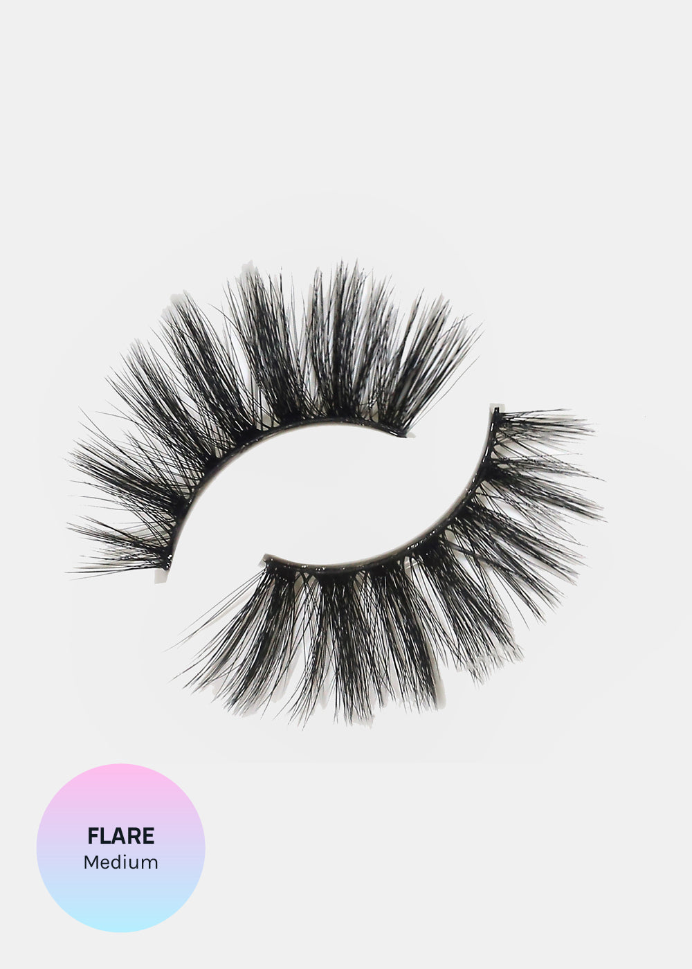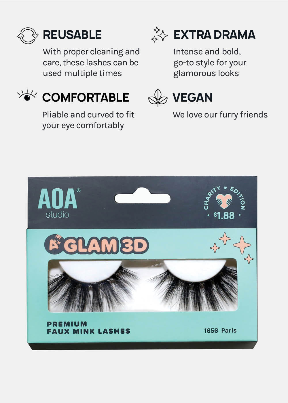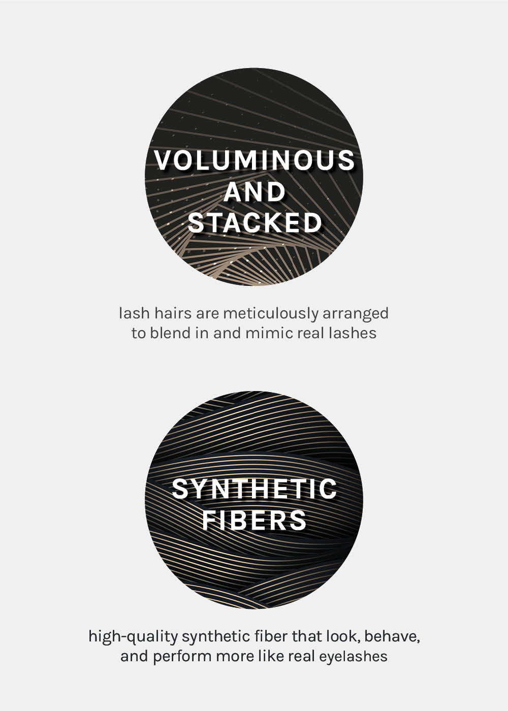GLAM, super WISPY, + stacked, A+ Glam 3D Faux Mink Eyelashes are 100% Vegan fiber layered to add fluttery length + volume to all eye shapes. Features a wide lash band to last multiple wears.