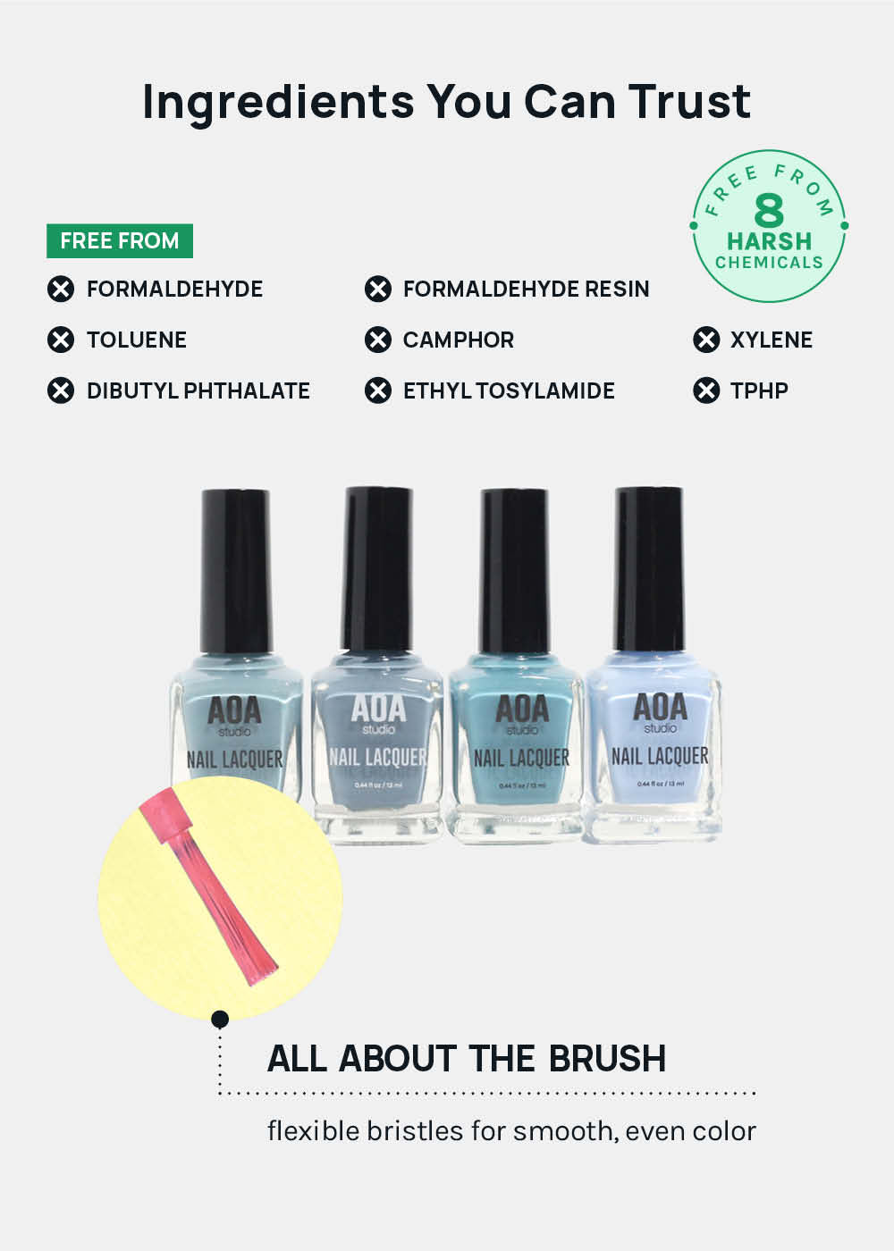 Express yourself with AOA Nail Lacquer, available in 54 NEW gorgeous shades from chic neutrals to dazzling glitters! Designed with a chip-resistant, non-toxic formula, this nail polish delivers vibrant, high-impact color with a smooth, streak-free application. Whether you love classic elegance or trendy statement nails, there’s a perfect shade for every mood and occasion.