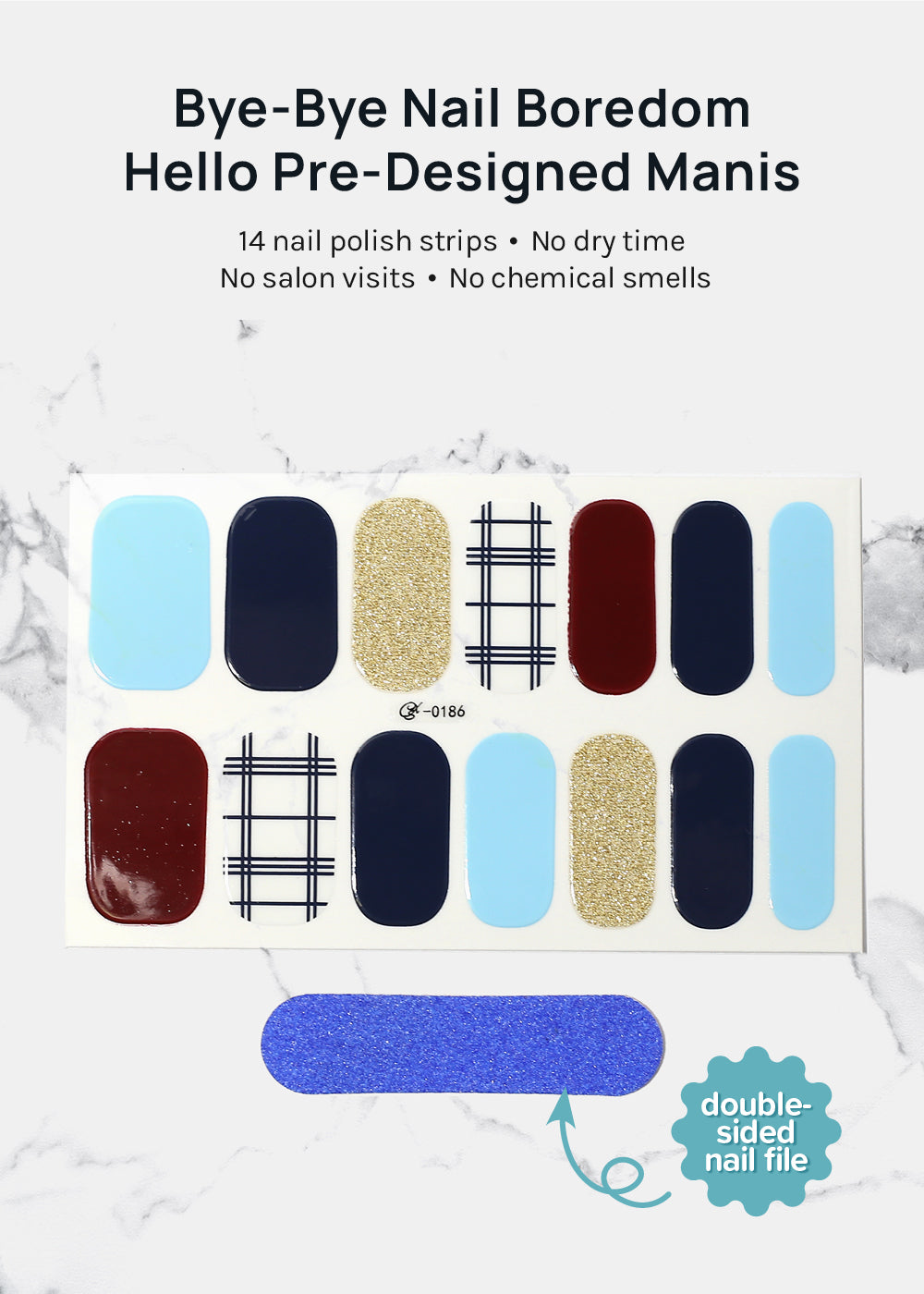 Includes 14 nail stickers + a double-sided nail file.