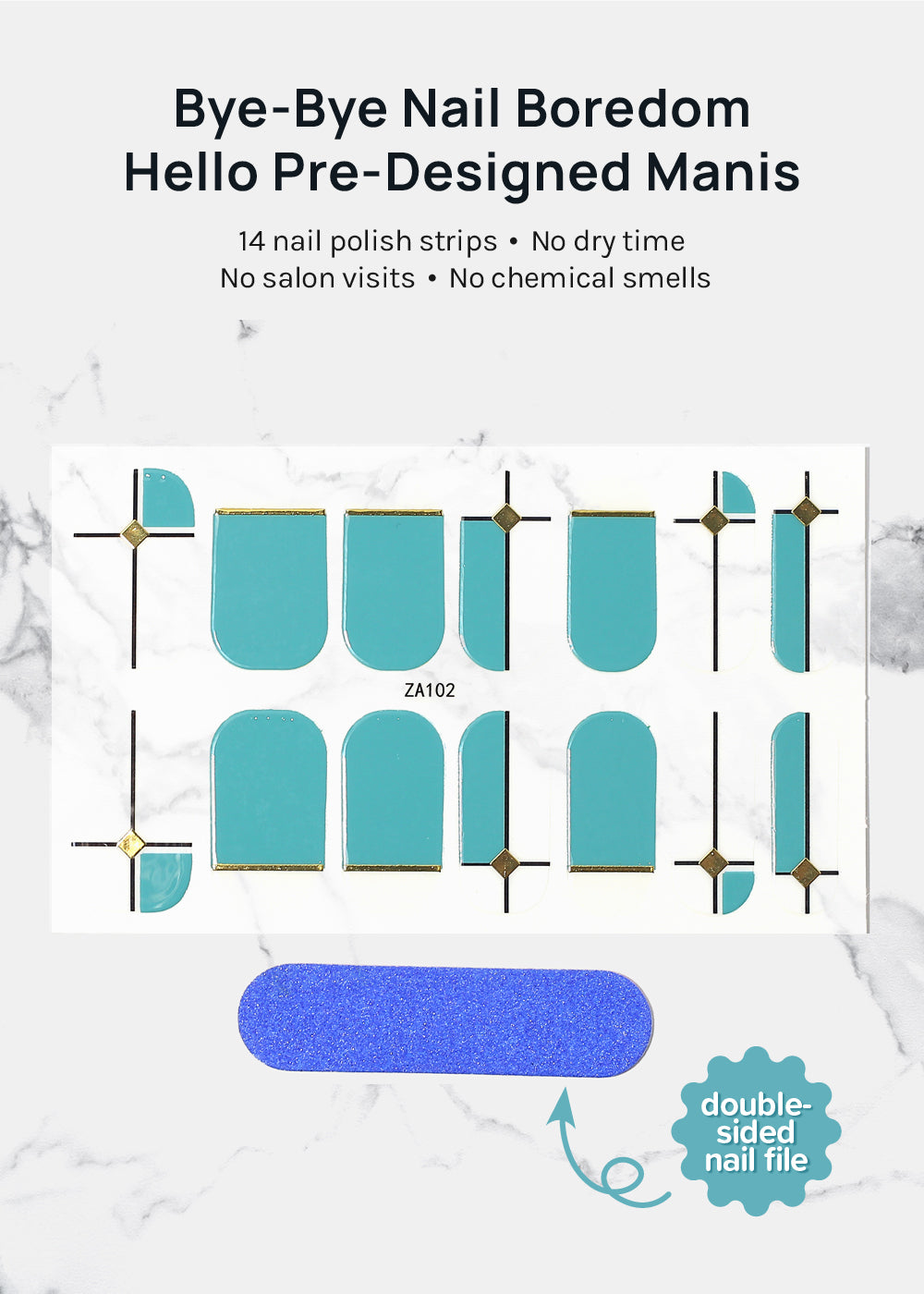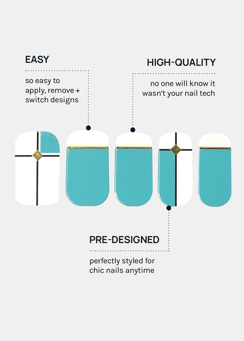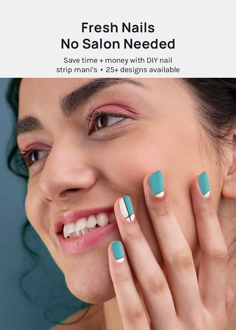 Bye-bye drying time! Create a perfect mani in minutes – just peel, stick, press + file!