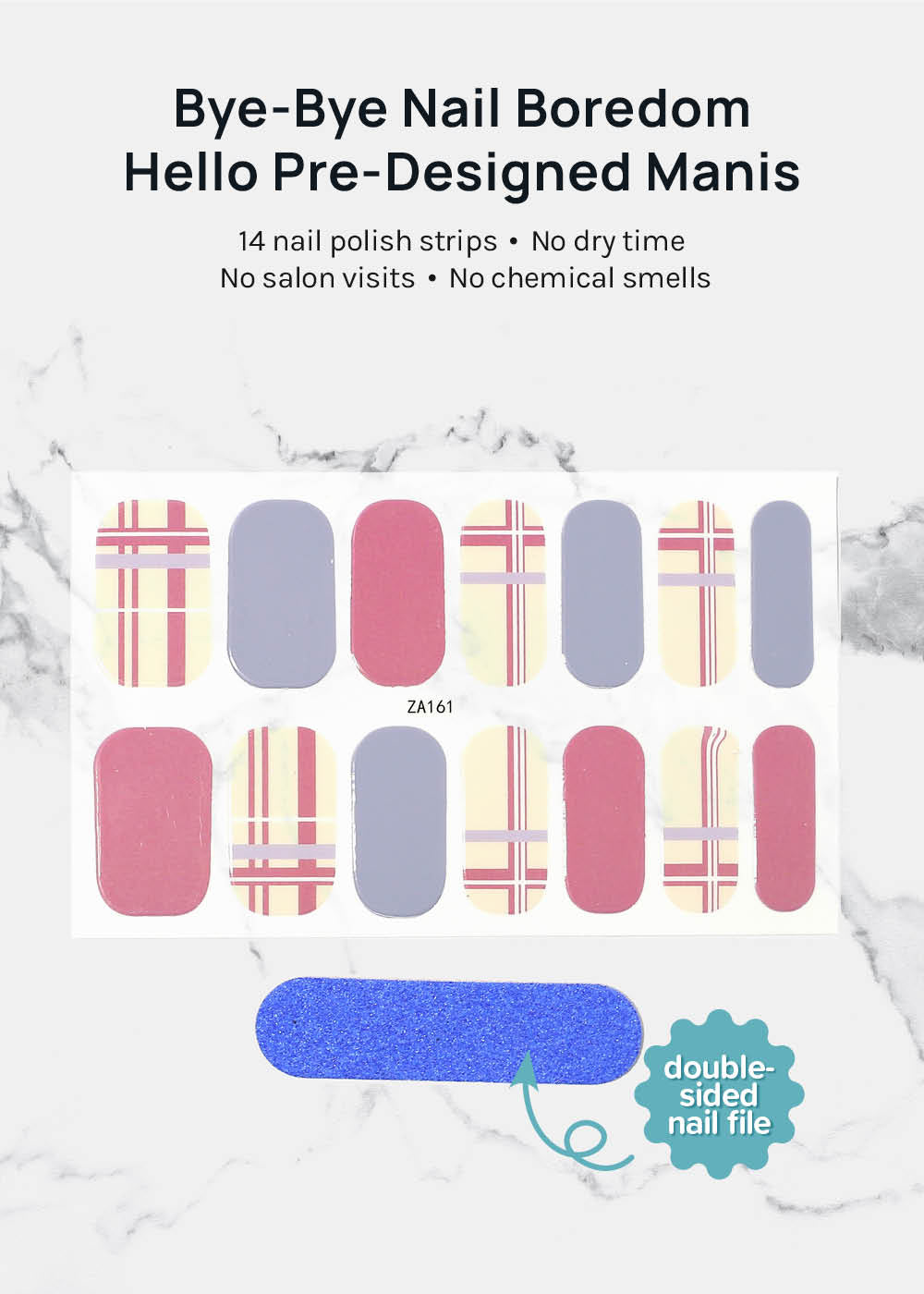 Includes 14 nail stickers + a double-sided nail file.