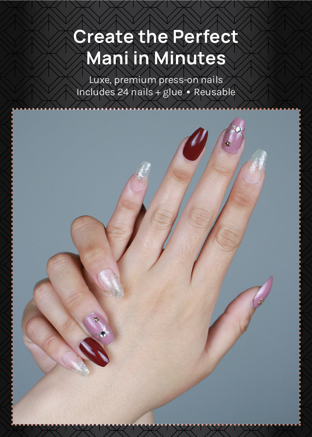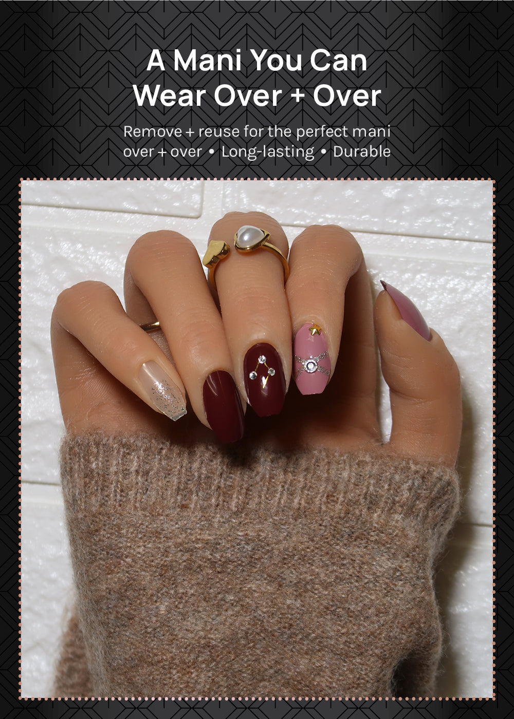 Luxe, durable, reusable nails to create the perfect manicure in minutes.