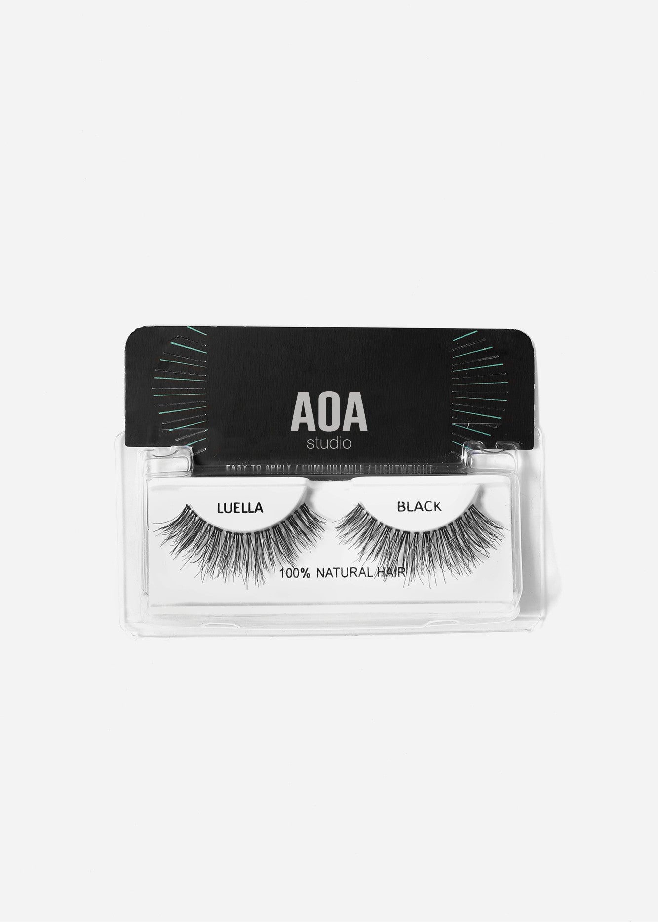 Lightweight + SUPER COMFY, AOA Studio Eyelashes are 100% Natural Hair + add fluttery glamor, length, volume, + definition to all eye shapes. Features a non-scratchy, flexible, invisible lash band for a super realistic look. Handcrafted with care.