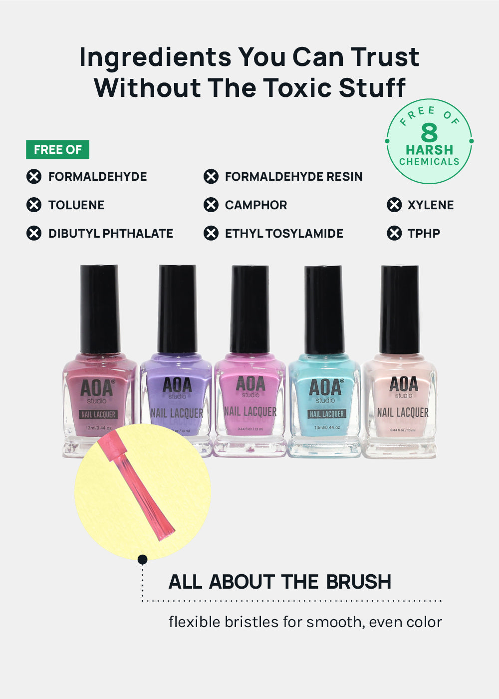 - Smooth, opaque polish formula