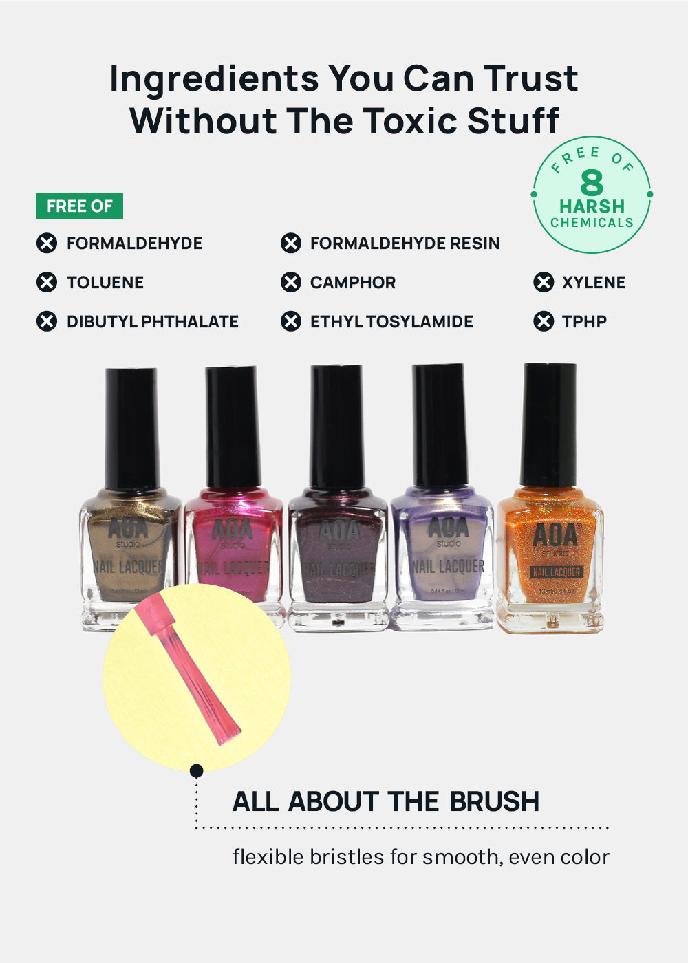 - Smooth, opaque polish formula