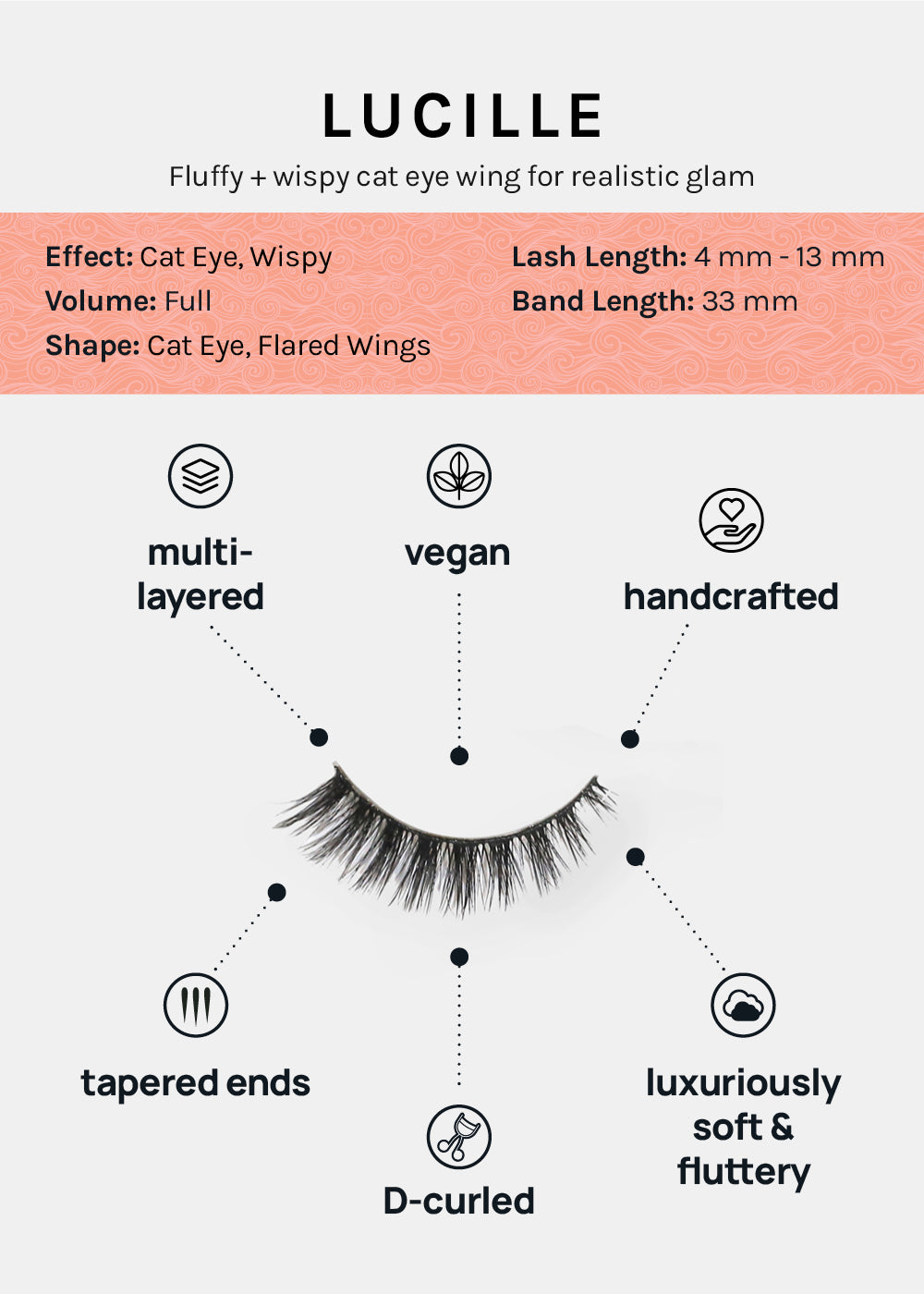 Inspired by lash extensions, lightweight, + SUPER CURLED, AOA D-LUX Curl Faux Mink Premium Lashes are stacked with multi-layered 100% Vegan fiber to add wispy length, lift, + volume to all eye shapes. Features a sturdy lash band to last multiple wears.
