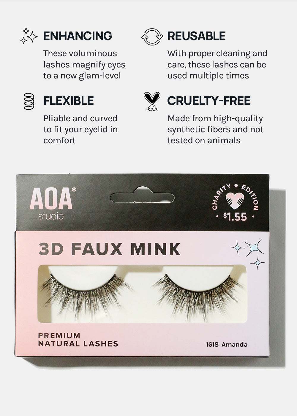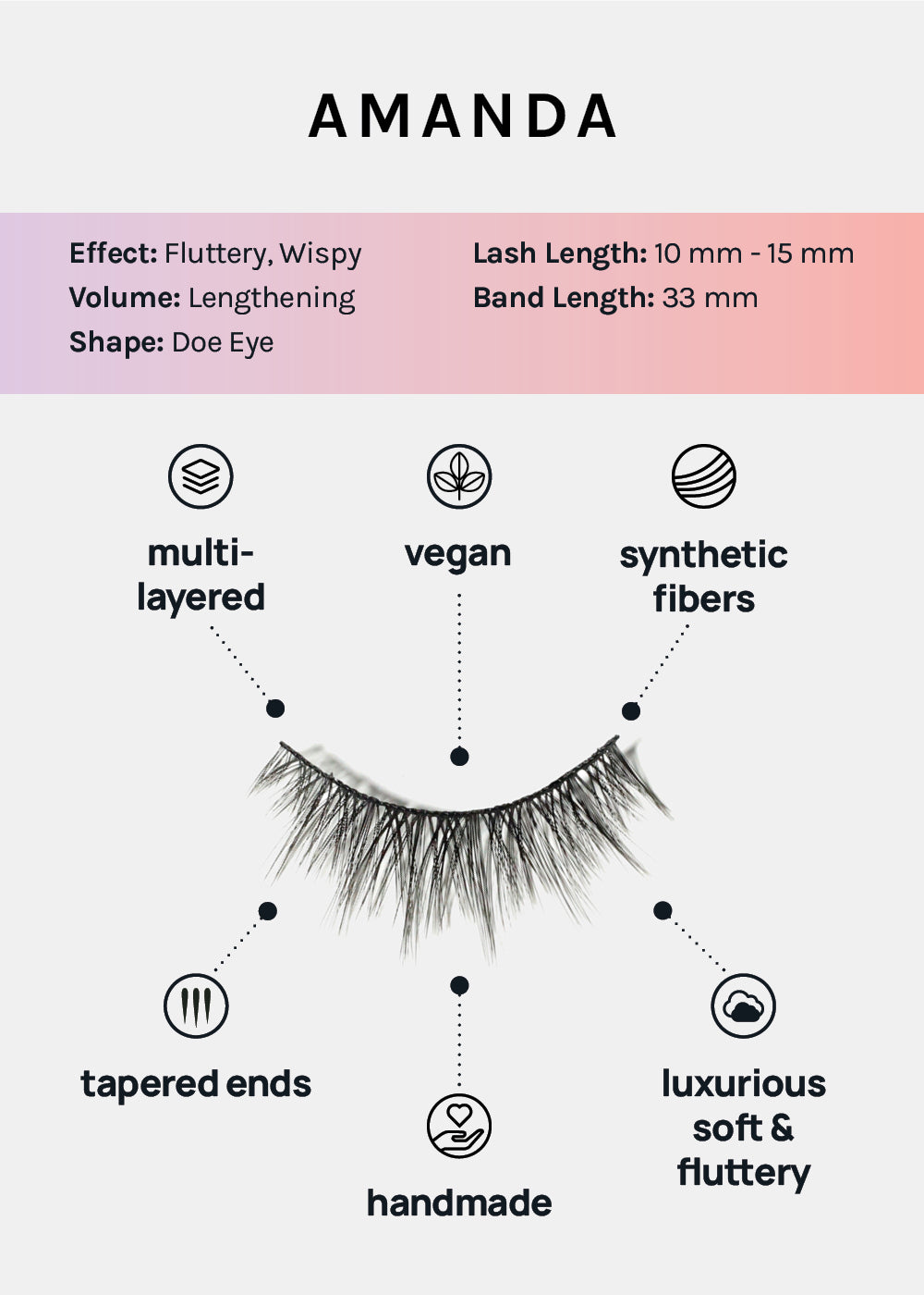 These lashes are vegan, cruelty-free, and made from synthetic fibers. The band is thicker, therefore can be reused multiple times with proper care and cleaning!