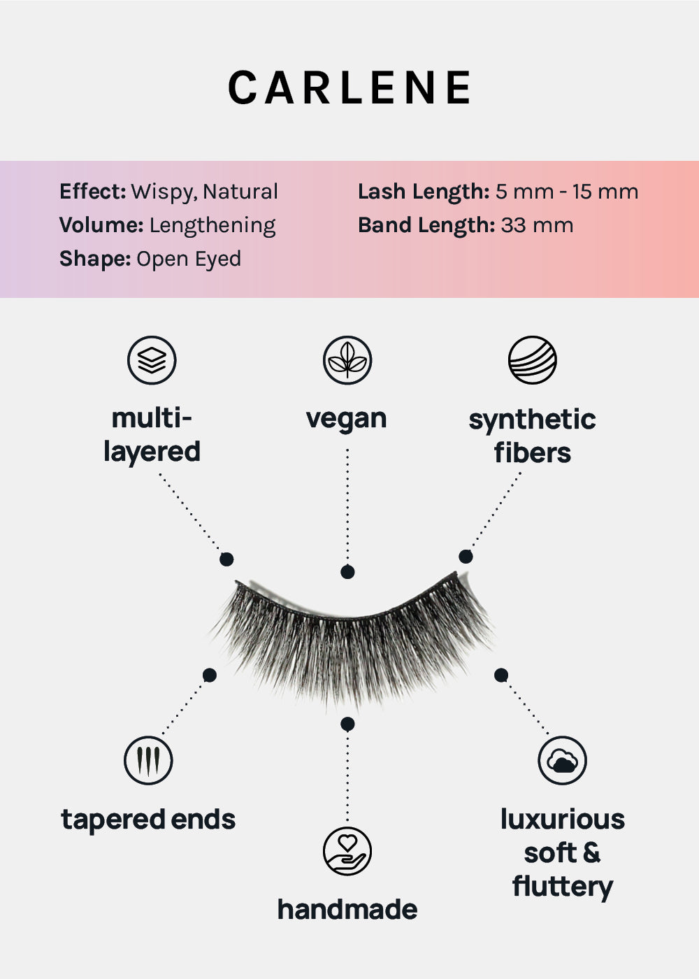 These lashes are vegan, cruelty-free, and made from synthetic fibers. The band is thicker, therefore can be reused multiple times with proper care and cleaning!