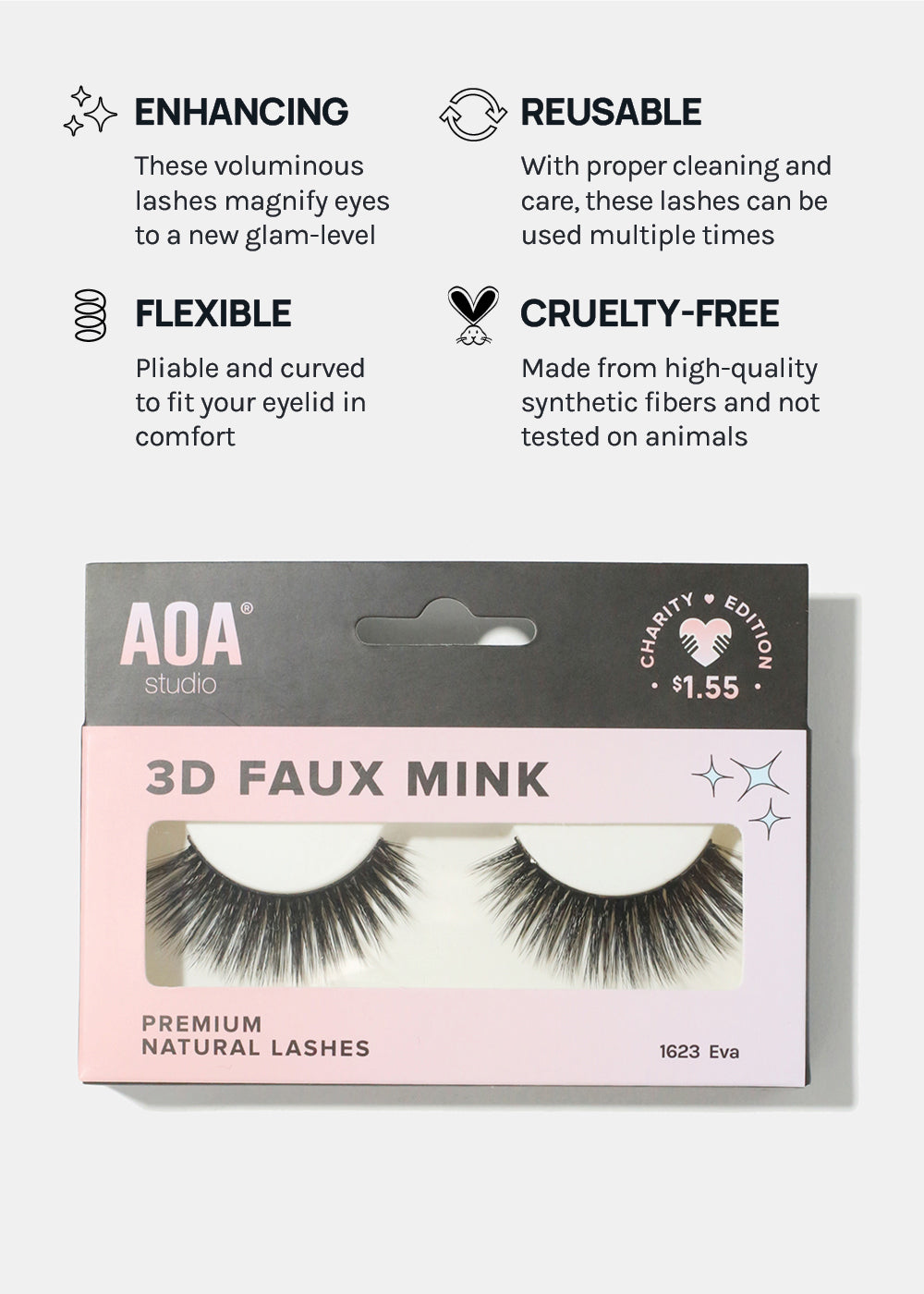 These lashes are vegan, cruelty-free, and made from synthetic fibers. The band is thicker, therefore can be reused multiple times with proper care and cleaning!