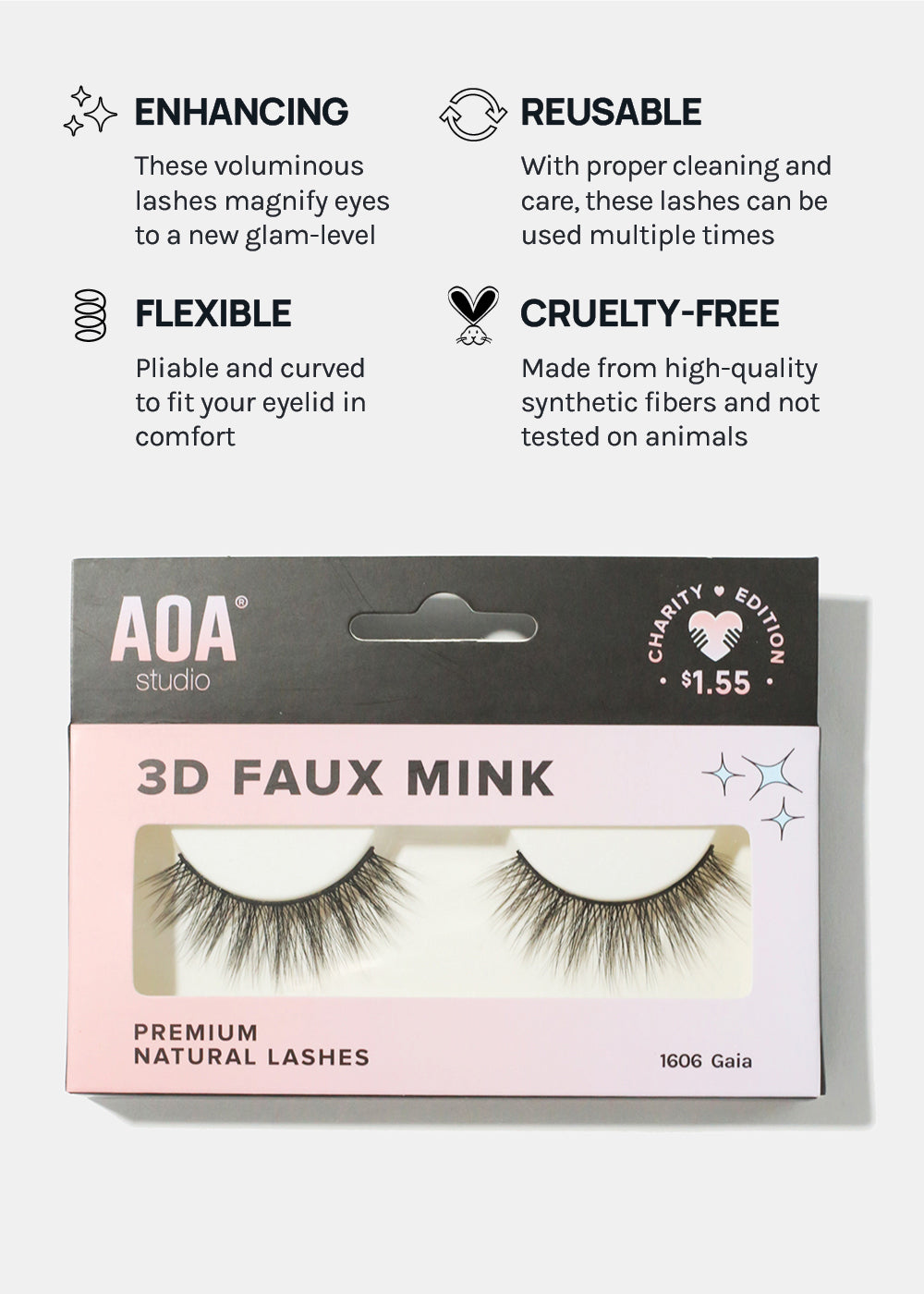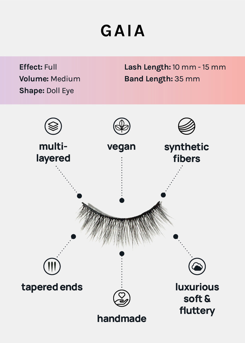 These lashes are vegan, cruelty-free, and made from synthetic fibers. The band is thicker, therefore can be reused multiple times with proper care and cleaning!